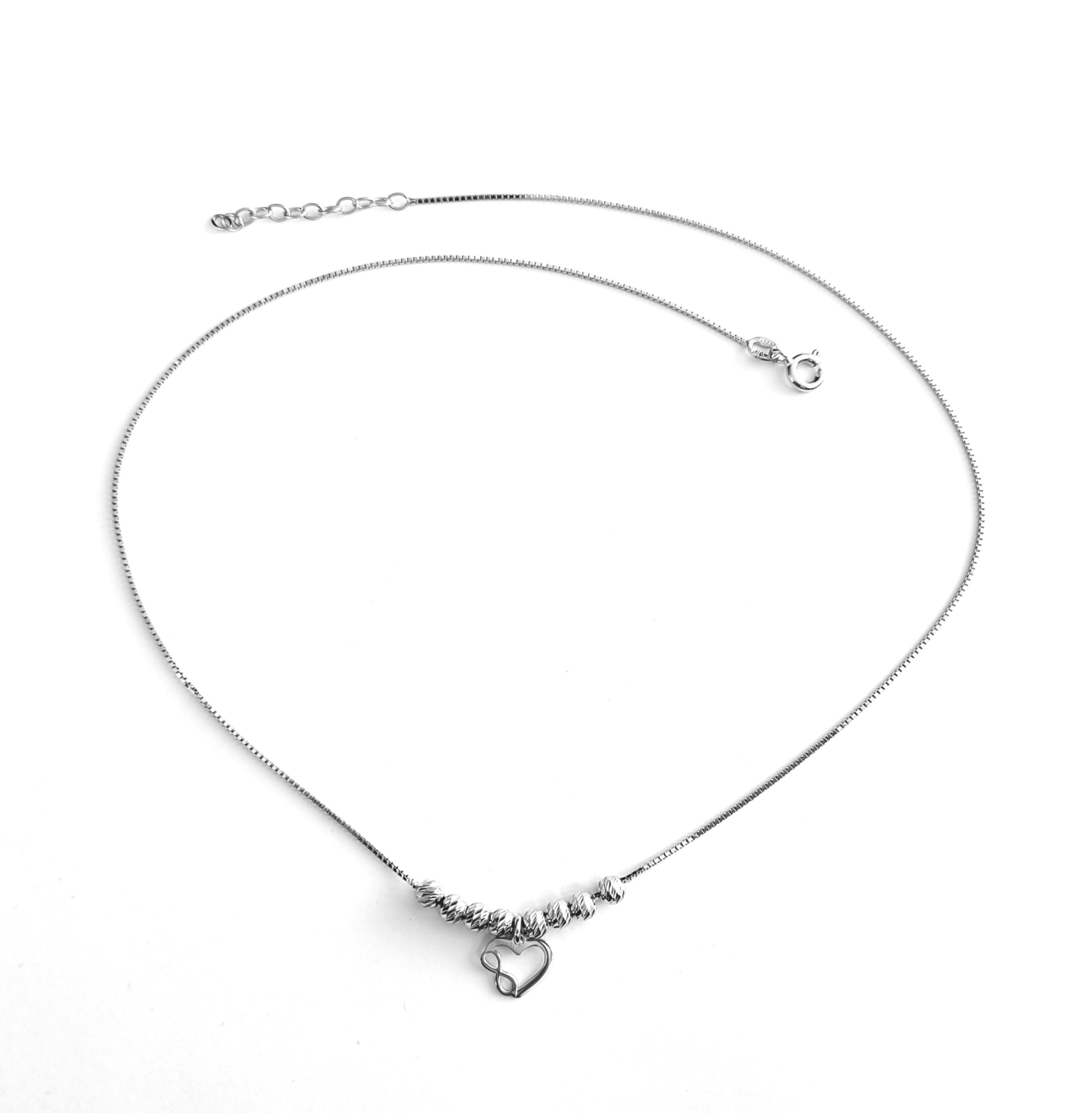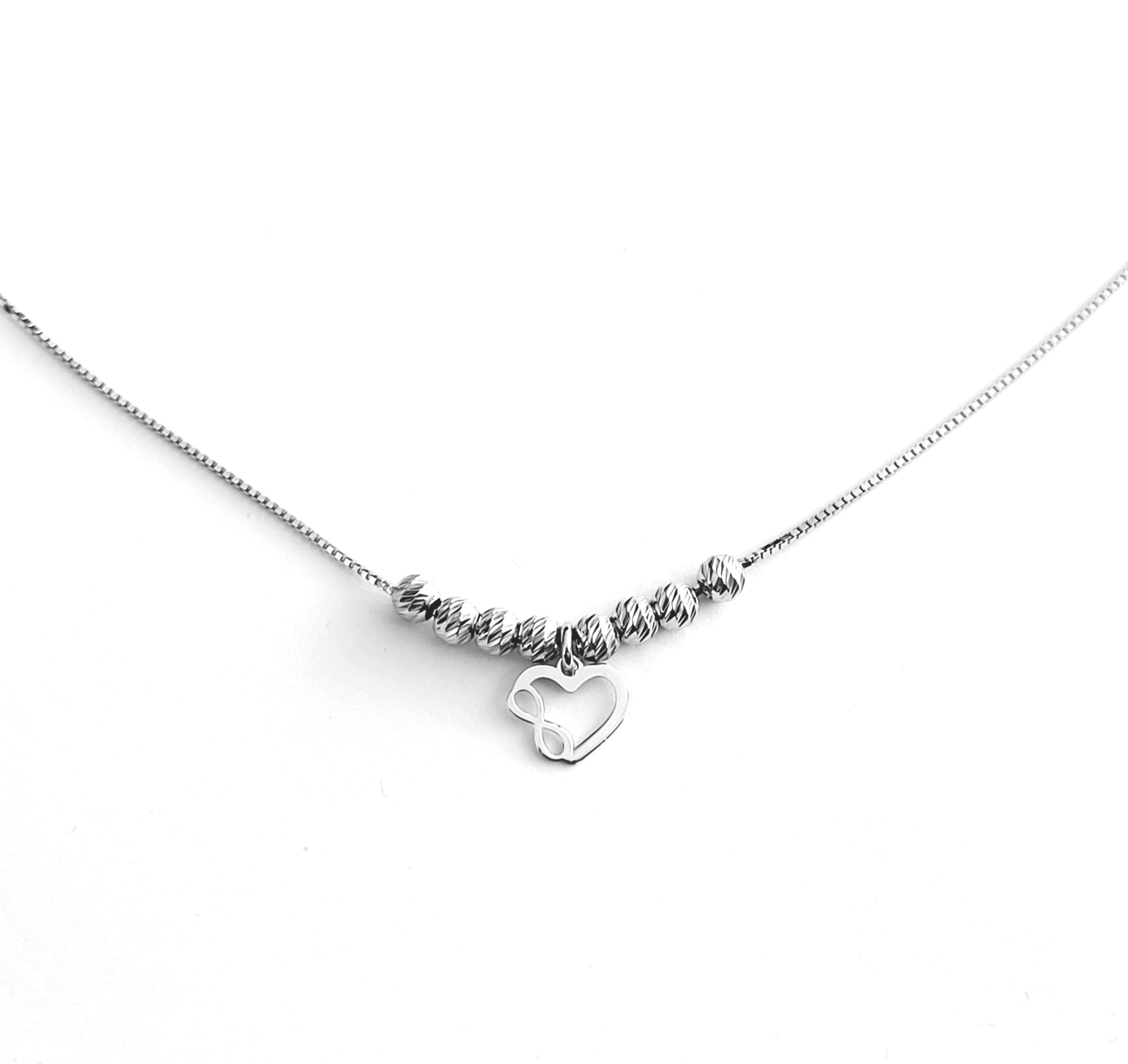Łańcuszek srebrny – celebrytka – SERCE z DIAMENTOWANYMI KULECZKAMI
