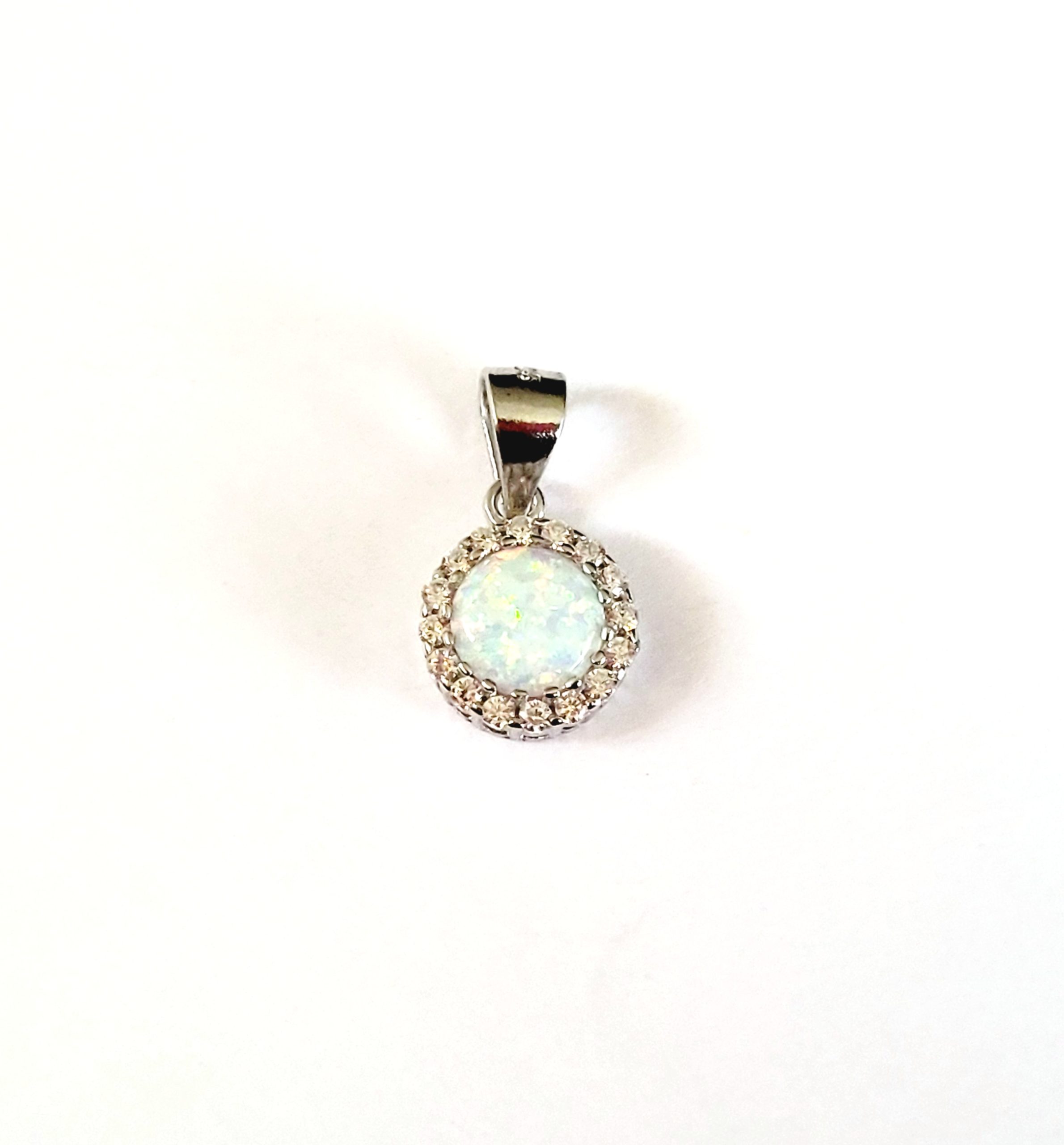 Zawieszka srebrna – BIAŁY OPAL z CYRKONIAMI