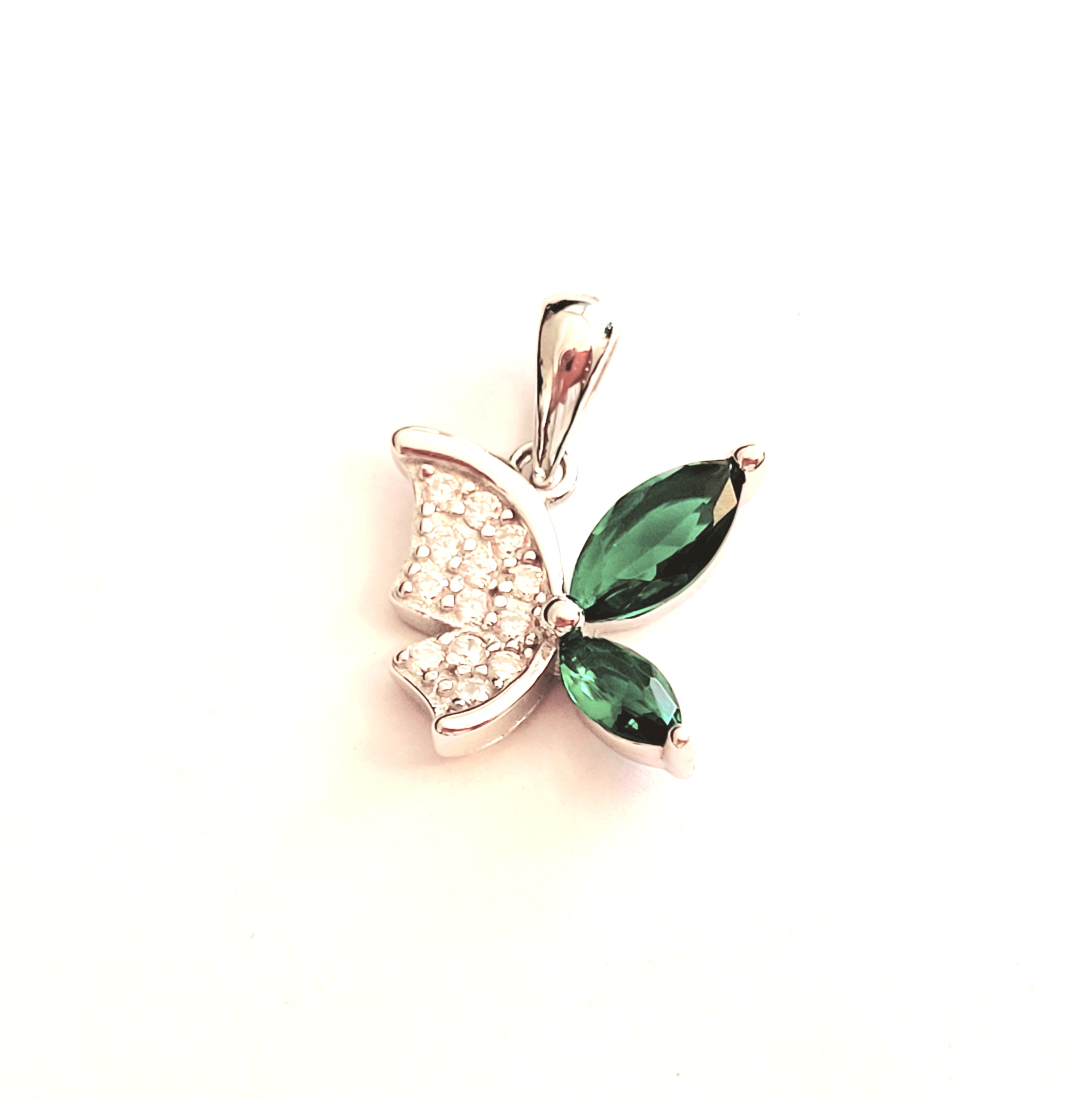 Zawieszka srebrna – ZIELONY MOTYL z CYRKONIAMI